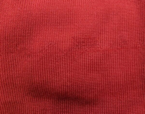 セーターの前身頃の右脇付近に小さな糸引きが1箇所あり、お修理跡も残らず、糸引きが元からなかったかのように綺麗にお修理が出来ました。 ※クリックしていただきますと拡大画像をご覧いただけます。