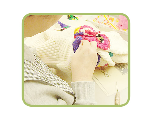 お客さまの思いにお応えする為に、職人は「こだわり」と「工夫」を繰り返し、一目一目に愛情を込めて修理作業を行っています。
