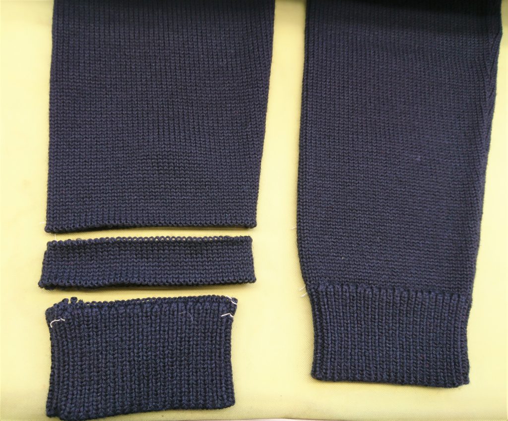 袖丈詰め・現状仕上げNO.1 2019年5月9日 最終更新日時 : 2025年12月20日 ニット修理専門工房管理者 袖リブと本体の必要分をカットし、編み繋げていきます。 仕上がりは、ほぼ現状通りです。 FacebookX